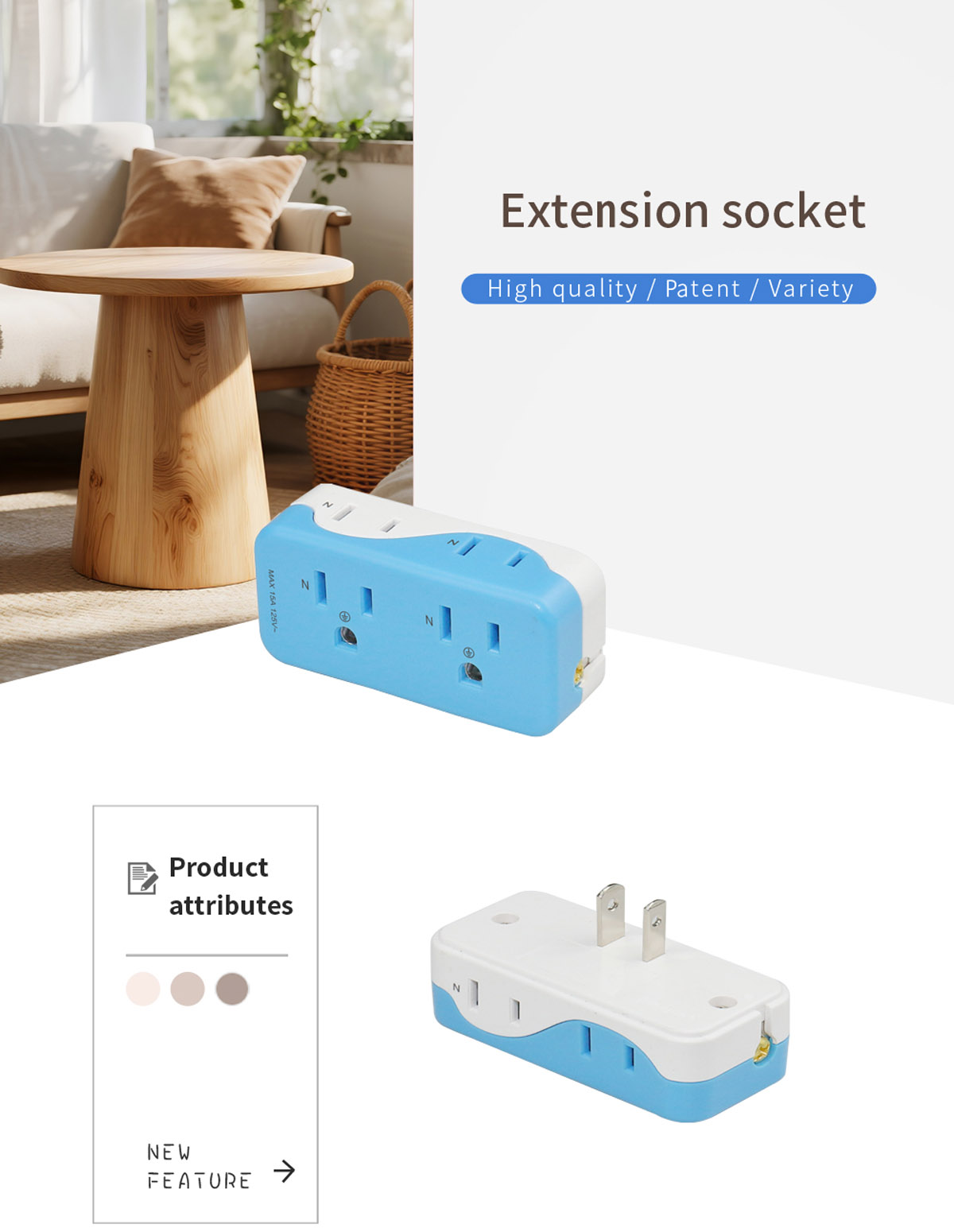 | Type | Extension Socket | Suitable for Area | TAIWAN AREA, JAPAN, U.S.A, CANADA |